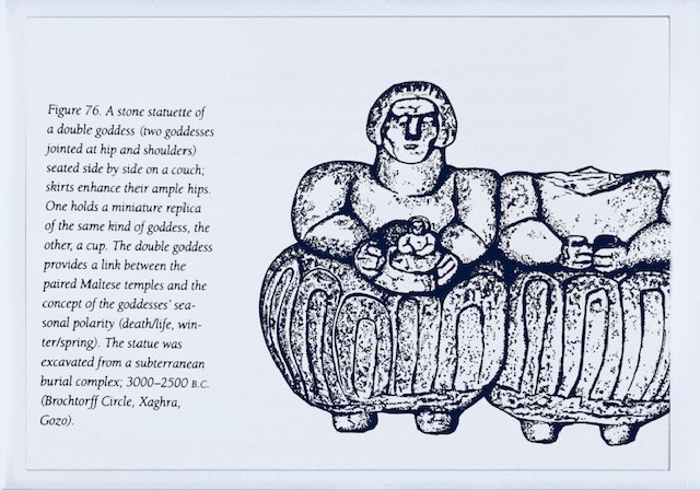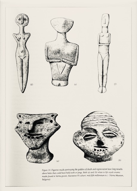 Mrs. Gimbutiene was a prolific writer of books and articles. A great treasure perched on my shelves is The Living Goddesses (1999), Marija’s last book, with the focus on the Neolithic era (ca 7000/6000-3000 B.C.) and the Bronze Age (ca 2500-1500 B.C.) as the main sources of research and findings.